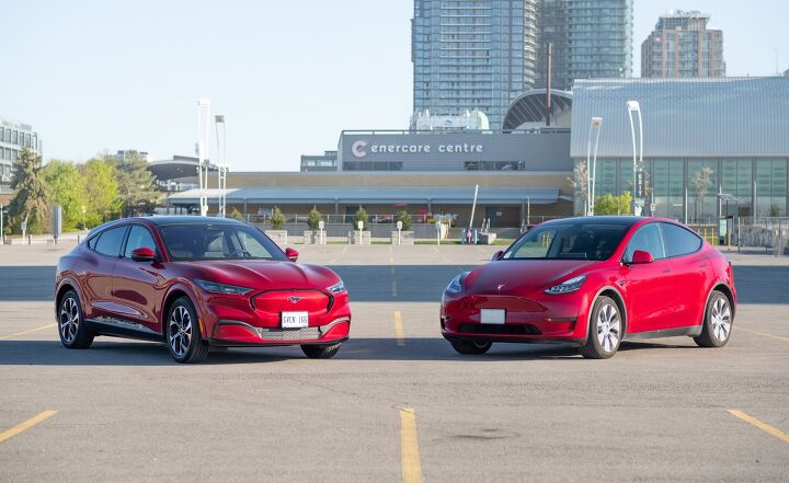 Ford Mustang Mach-E ir Tesla Model Y yra du vidutinio dydžio elektriniai crossover automobiliai, kurie konkuruoja tarpusavyje. Nors Ford Mach-E sukėlė nemažą susidomėjimą, Tesla Model Y vis dar išlaiko pranašumą dėl savo didesnio nuvažiuojamo atstumo ir prekinio ženklo atpažinimo.